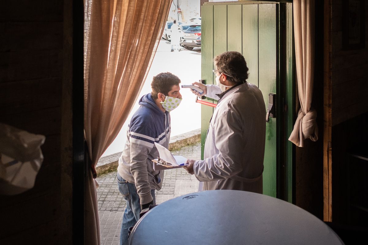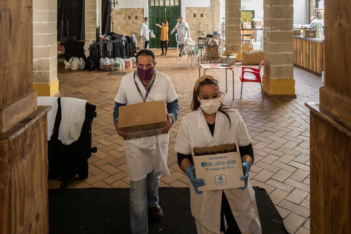 A las puertas del bodegón del centro de Jerez toman la temperatura al acceder. Lo llaman El Álamo, como aquella fortaleza texana que resistió el asedio contra viento y marea. La higiene en su interior es máxima e incluso los voluntarios cuentan con protocolos sanitarios para protegerse en las salidas a la calle y proteger de posibles nuevos contagios en las entregas de alimentos y productos de primera necesidad que llevan a cabo cada jornada.