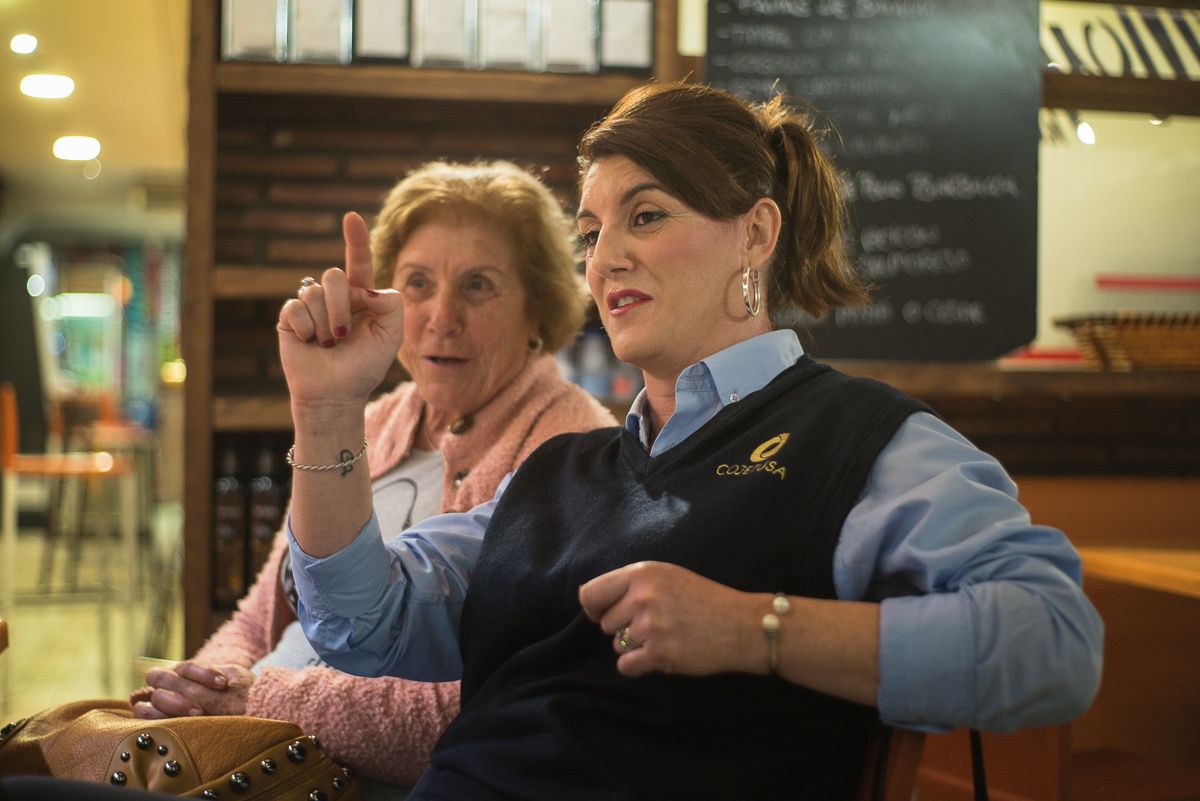 Isabel hablando con su madre durante la entrevista. FOTO: MANU GARCÍA.