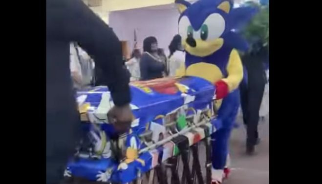 Una persona disfrazada del popular erizo transportaba el ataúd, customizado con el personaje de videojuego, del pequeño fallecido. Los asistentes tuvieron que vestir prendas blancas o azules, los colores representativos de Sonic.