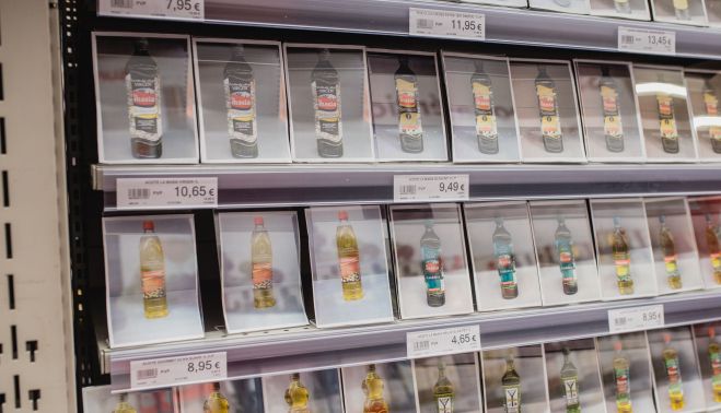 Otros supermercados, como Covirán, presente en muchos barrios de las ciudades y pueblos de Andalucía, han invertido en alarmas como si fueran tiendas de ropa alrededor de los tapones, o bien con pegatinas que cuentan con dispositivos que hacen saltar las alarmas. En este caso, el de la calle San Luis, además están justo detrás de los dependientes de caja y no al acceso del público.