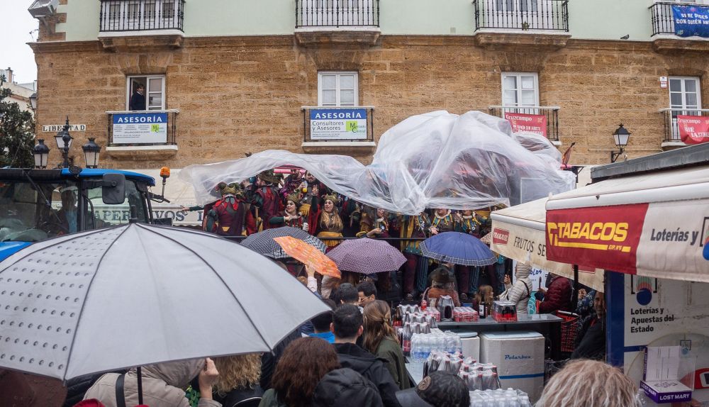La Aemet ofrece un 80% de probabilidades de que llueva el viernes 28 de febrero. Esas posibilidades son las mismas que existen para el sábado, día de batalla de coplas en el Mercado y del pregón de Antoñito Molina en la Plaza de San Antonio. El sábado también es el día que se espera más gente en Cádiz debido a la costumbre de muchos de utilizar la ciudad para hacer botellón. El domingo, uno de los días grandes, la Aemet también da lluvia, aunque reduce las posibilidades hasta el 60%. No obstante, habrá que estar atentos a las próximas actualizaciones para conocer cómo se desarrollará el fin de semana.