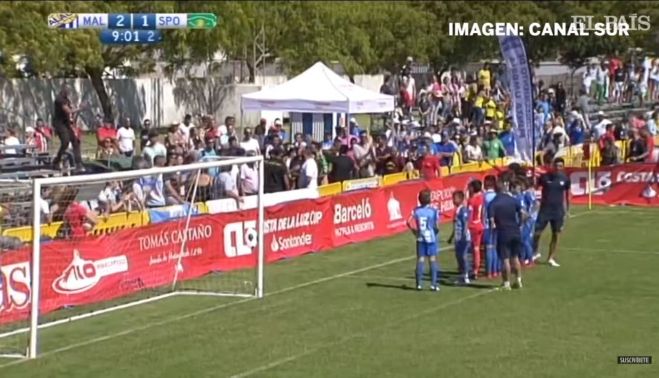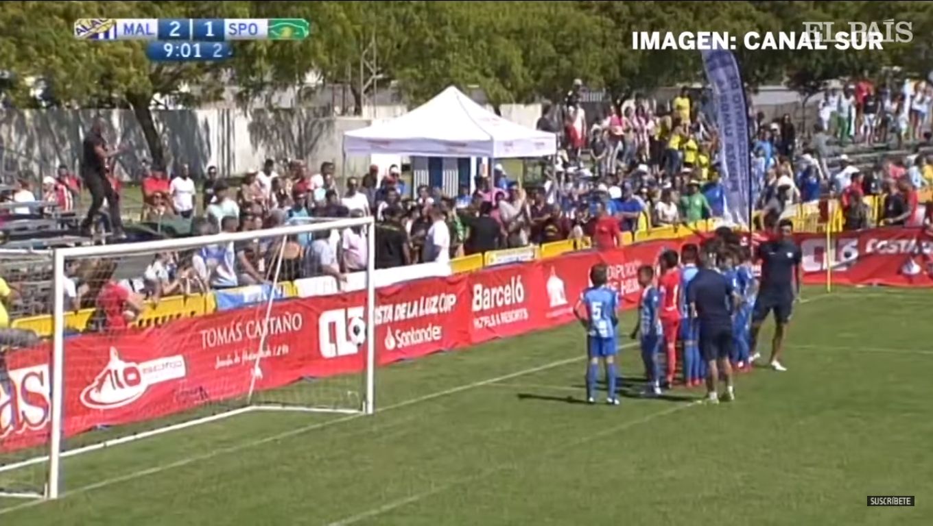 Los jugadores de la categoría alevín del Málaga Club de Fútbol han protagonizado el pasado domingo un episodio de deportividad por el que sus padres han tenido que tomar ejemplo. En un partido contra el Sporting de Portugal correspondiente al torneo Costa de la Luz Cup que se celebra en la localidad onubense de Punta Umbria, tuvo lugar una trifulca en la grada.Canal Sur, que retransmitía estas semifinales con niños de 10 y 11 años, captó el momento en el que los jugadores pararon el partido y se dirigieron hacia uno de los fondos para ponerse de espaldas. La protesta prosiguió con la gesticulación de los chicos con las manos, haciendo un gesto de "así no", provocando el aplauso de la mayor parte de los aficionados de la grada, poco antes en plena discusión por el partido. De hecho, el personal de seguridad tuvo que intervenir momentos antes por la discusión de los seguidores de ambos equipos.https://www.youtube.com/watch?time_continue=37&v=LVl4r_gR7vw