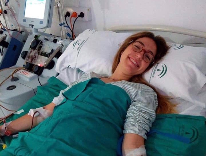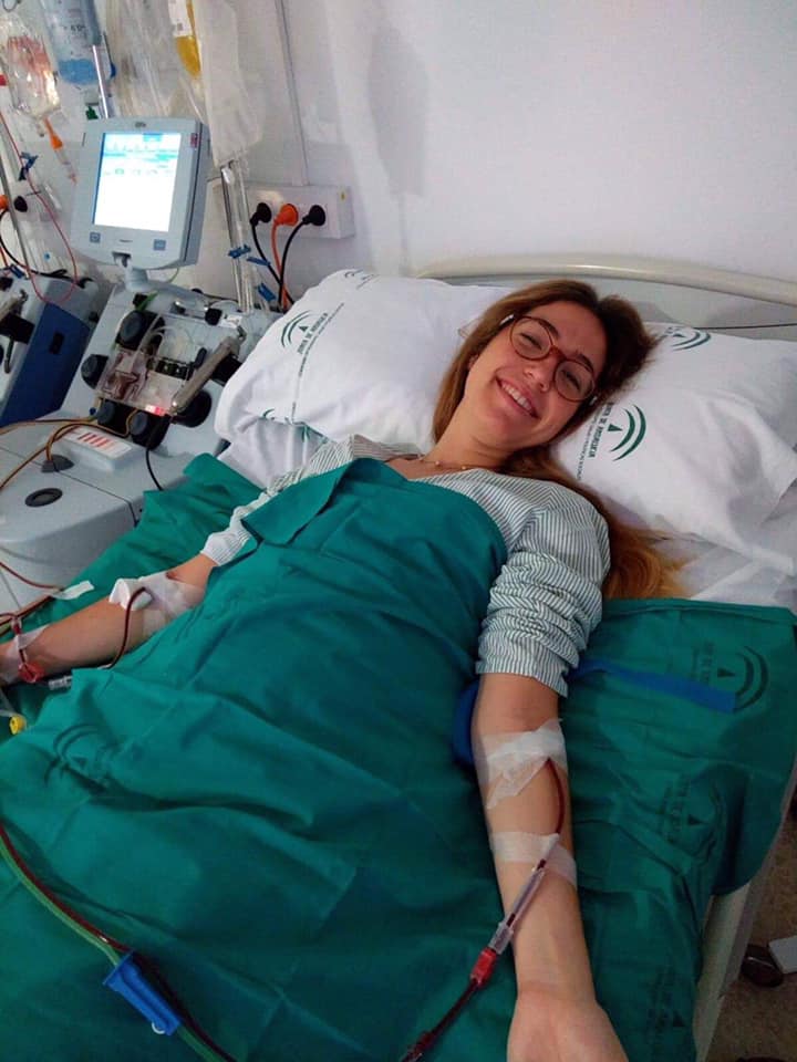 Lucía Díaz mientras dona médula ósea en el Hospital de Jerez.