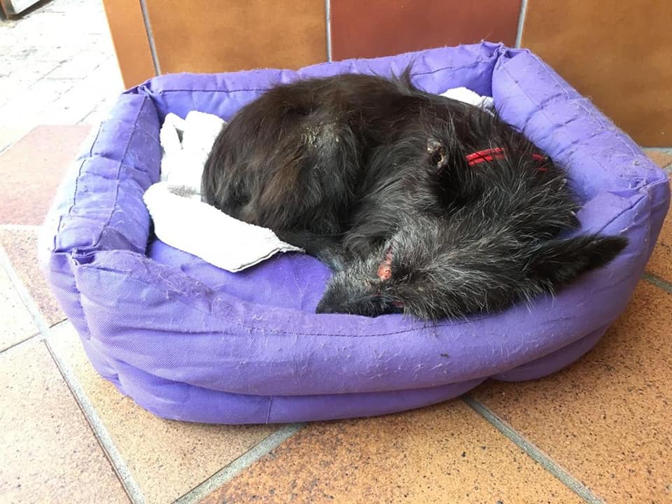 Recuerdo especialmente cuando llegaste a casa, necesitabas unos cuidados muy especiales por tu delicado estado y no podías ir al refugio, desorientada por tu ceguera y temerosa de que la mano que se acercaba. Cuando te pusimos tu camita, bendita camita, para que descansaras, no te moviste en toda la noche y tu cuerpecito malherido y tus ojitos que no se podían cerrar por las úlceras, sintieron algo blandito dónde descansar, que alivio debiste sentir. A pesar de lo sufrido, tu rabito no dejaba de moverse, agradecida, feliz. Rebosando Amor.