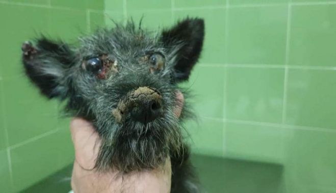 Te encontramos tras un aviso de una persona conmovida por tu situación. Cuando fuimos a rescatarte, no dábamos crédito a lo que vimos. Un cuerpecito maltrecho, llenito de úlceras, tus ojos ciegos, secos, sin vida… como una muñequita rota.