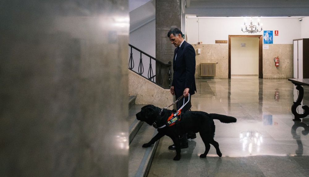 Hasta conseguir que le asignaran a Pusky, Luis había sufrido muchos golpes, choques con bolardos y tropiezos en el trayecto hacia el trabajo. Y después de cuatro años y medio de espera —lo solicitó en 2018—, y de una semana de convivencia en Boadilla del Monte, la Fundación ONCE del Perro Guía entregó el labrador al magistrado. "Luis ha sido un alumno disciplinado, que no todos son así, a algunos hay que repetirles las cosas muchas veces", cuenta Nuria García, instructora de la fundación.