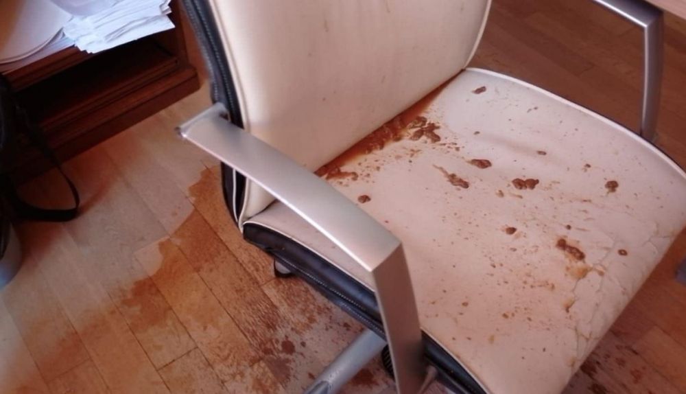 Tras esto, la mujer sacó de su bolso un recipiente donde tenía las "heces y orines humanos" que esparció tanto por la mesa como por la silla del despacho. Como pruebas, el político ha presentado imágenes de lo narrado.