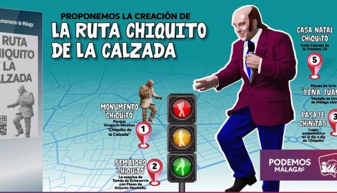 Málaga tendrá una ruta en memoria de Gregorio Sánchez, más conocido como Chiquito de la Calzada, con la que poner en valor la figura del humorista, cantaor y artista malagueño. Adelante Málaga —la confluencia que incluye a Podemos e IU— abanderó una propuesta que han apoyado el resto de grupos, PP, PSOE y Ciudadanos. La ciudad malagueña tendrá así una ruta oficial de Chiquito de la Calzada, con visitas a lugares emblemáticos en la vida del humorista. Además, se instalarán placas conmemorativas en su recuerdo en cada uno de esos lugares de la ruta, con una explicación sobre la importancia del lugar y un código QR que dirija a vídeos de sus actuaciones o entrevistas. También se instalará un semáforo con su característica silueta la calle Tomás de Echevarría del barrio de Huelin, cerca de la casa donde pasó sus últimos días, un mural en el barrio La Trinidad y la creación de un festival anual del humor que lleve su nombre.