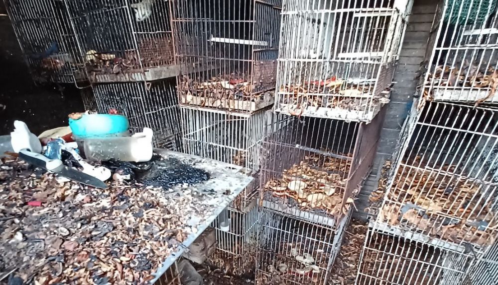 Esto motivó que los guardias civiles realizaran una inspección en dicha instalación que carecía de iluminación alguna y de aireación, donde localizaron la cantidad de 40 jaulas apiladas, varias de ellas vacías, en condiciones de salubridad e higiene extremadamente deficientes y que desprendían un olor nauseabundo debido a la acumulación de heces y orines.