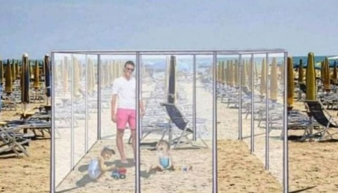 Una empresa italiana propone la instalación de cubículos o corrales con pantallas transparentes para que ir a la playa sea seguro este verano. La compañía Nuova Neon Group Due Srl propone un espacio cerrado con paredes de plexiglás de 4,5 metros por 4,5 metros, que a su entender serían suficientes para albergar a dos o tres personas, dos sillas y una sombrilla.