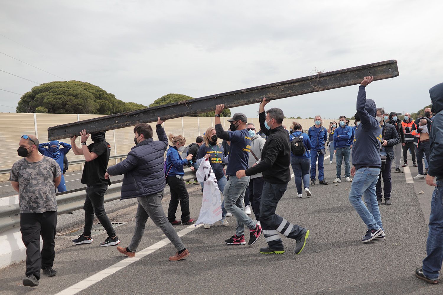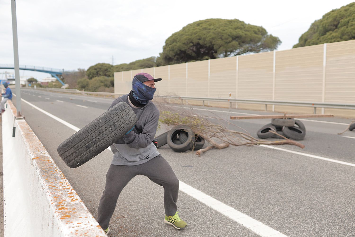 La plantilla de Airbus corta las entradas a Cádiz con vigas, neumáticos y ramas.