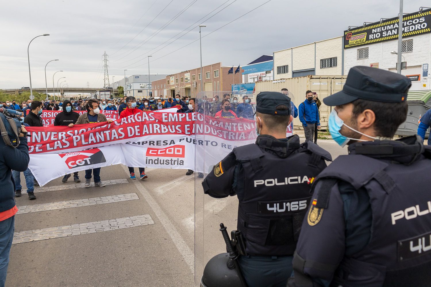 Trabajadores de Airbus, minutos antes de la manifestación.