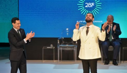"Esta medalla no sé si la merezco, pero como el cáncer no me lo merezco y me lo he tenido que quedar, las cosas buenas me las estoy quedando también", ha comentado Manu Sánchez al recibir la Medalla de Andalucía a los Valores Humanos.