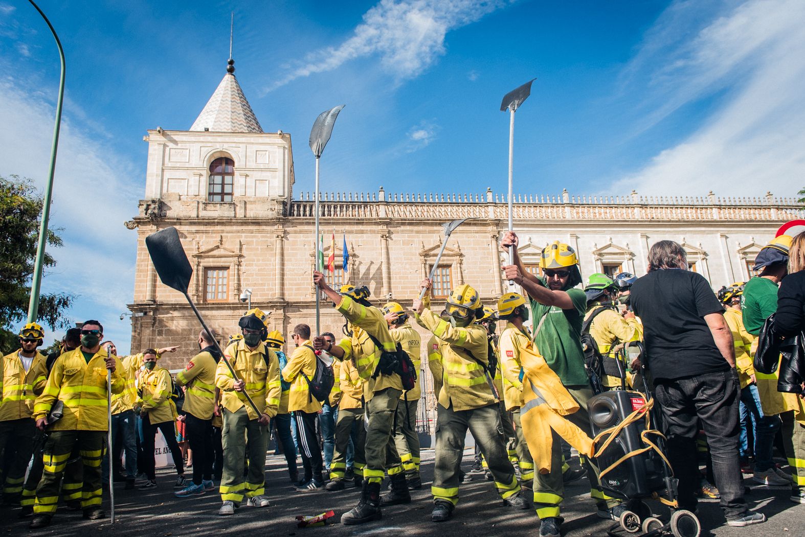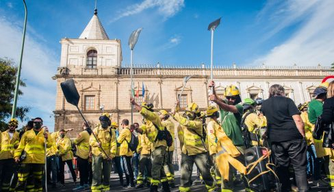 Un bombero forestal del Plan Infoca, contratado en fraude de ley, trabajando cuatro meses y medio al año, "y con suerte, porque ningún año es seguro", se pasa el resto del año estudiando oposiciones a bombero, ya que el futuro en Infoca, en su opinión, "se ve cada vez peor para los eventuales". Es uno de los multados durante la manifestación del 27 de noviembre junto al Parlamento de Andalucía.