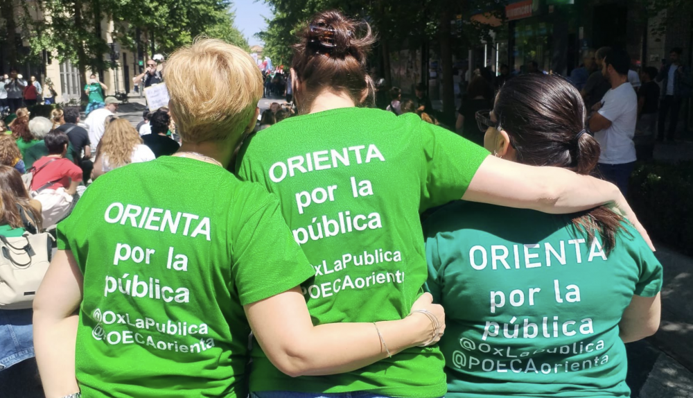 Orienta por la Pública señalan que "los orientadores somos quienes nos hacemos cargo en su gran parte del seguimiento diario de los protocolos en los centros. Por eso, exigimos una bajada de ratio estructural para un acompañamiento al alumnado con riesgo. Necesitamos tiempo para prevenir, detectar, acompañar y derivar".