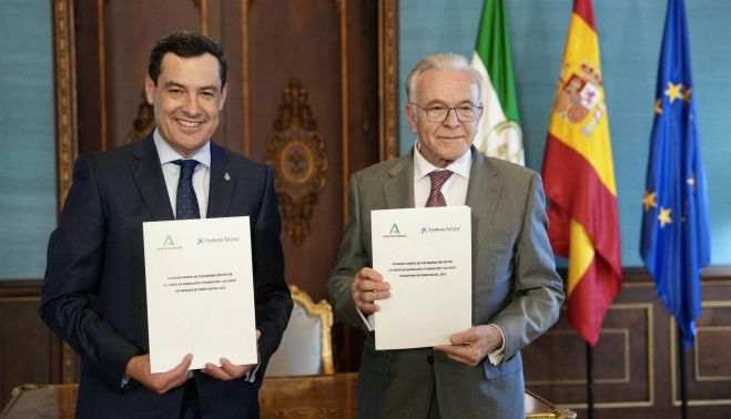 El presidente de la Junta de Andalucía, Juanma Moreno, y el presidente de la Fundación ‘la Caixa’, Isidro Fainé, han renovado el convenio de colaboración entre ambas instituciones para 2025, que contempla la inversión de hasta 68 millones de euros en programas sociales, educativos y culturales en la comunidad.