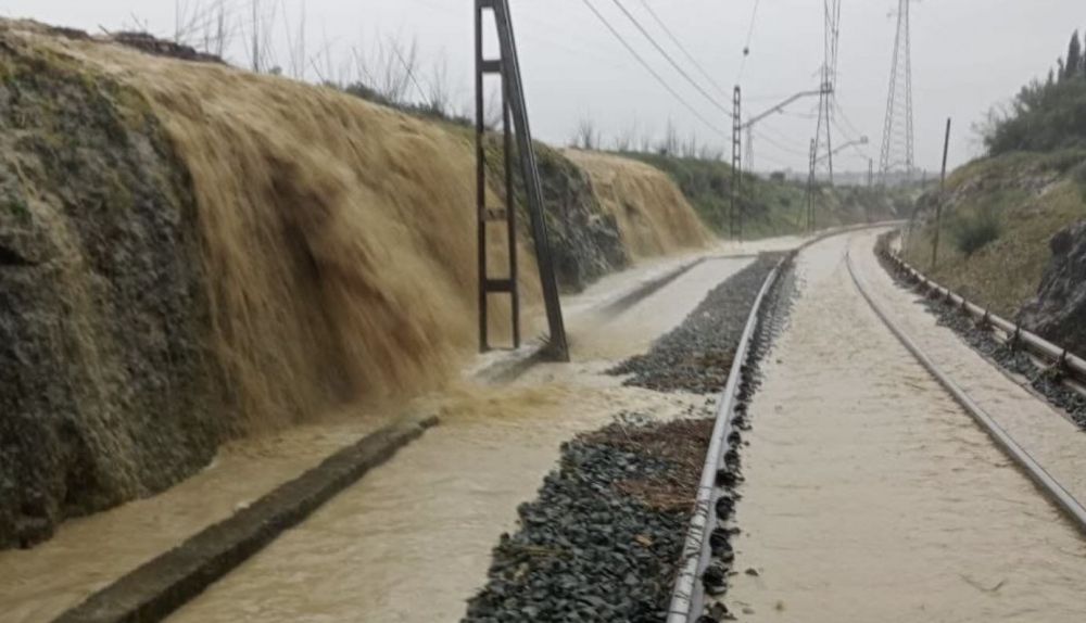 Los fenómenos meteorológicos extremos siguen produciéndose. Esto en la línea Sevilla Huelva, que ha obligado a interrumpir el servicio es de hoy mismo. pic.twitter.com/iAGGZ3bvZT