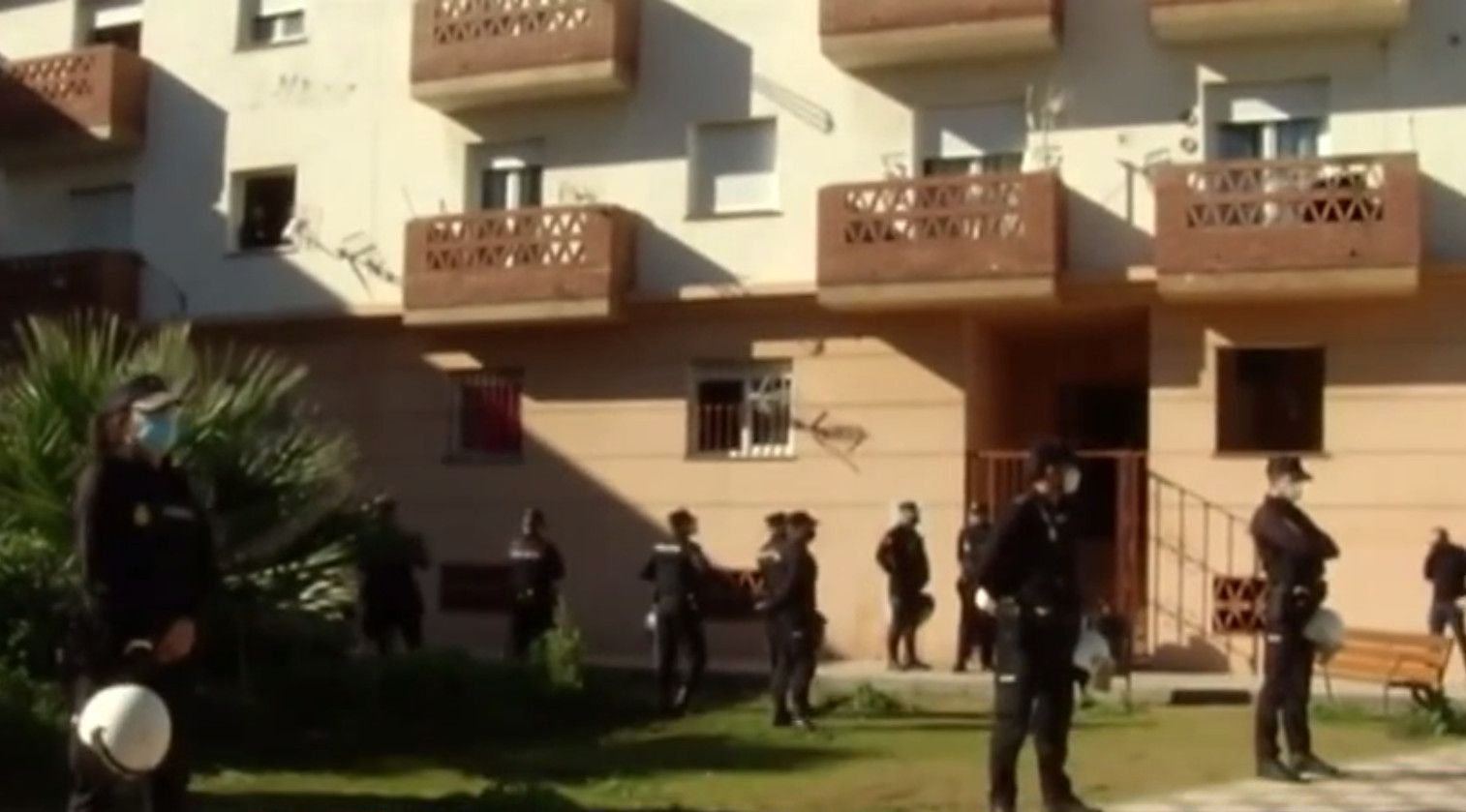 En la mañana del jueves acudió un importante dispositivo policial que rodeó las casas, junto al secretario judicial. Lo que encontraron fue que varios vecinos no se encontraban o no podían salir. Uno de ellos trabajando en Gibraltar. Otras personas, infectadas de covid y guardando aislamiento. En otros casos, familias de un número importante con menores de edad o con personas con discapacidad.
