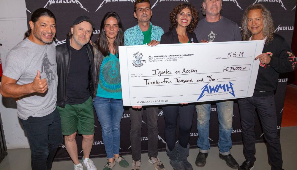 Antes del inicio del concierto celebrado en Montjuic ante más de 50.000 personas, fueron los propios componentes de la mítica banda —James Hetfield, Lars Ulrich, Kirk Hammett y Robert Trujillo— los encargados de entregar uno de esos cheques, con una aportación de 25.000 euros, a las representantes de Calor en la Noche y las de Iguales en Acción, desplazadas hasta Barcelona para la ocasión
