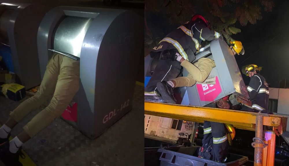 Una escena tan insólita como peligrosa se vivió durante la madrugada en Guadalajara, México. Una persona terminó medio cuerpo atrapado dentro de un contenedor de reciclaje soterrado, lo que obligó a la intervención urgente de los servicios de emergencia. Según el parte oficial, bomberos atendieron el aviso de una persona que había quedado atrapada en uno de los contenedores de reciclaje de punto limpio. Al llegar al lugar, lcomprobaron que la persona había intentado ingresar en el contenedor, quedando inmovilizada por el mecanismo interno del sistema.