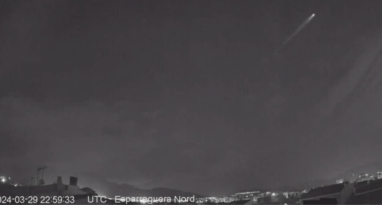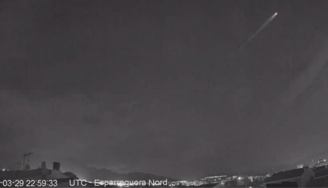 El bólido, que ha sido denominado por el referido instituto como SPMN290324ART, podría tratarse de un misil balístico. El artefacto sobrevoló el espacio español a las 23.59 horas del viernes.
