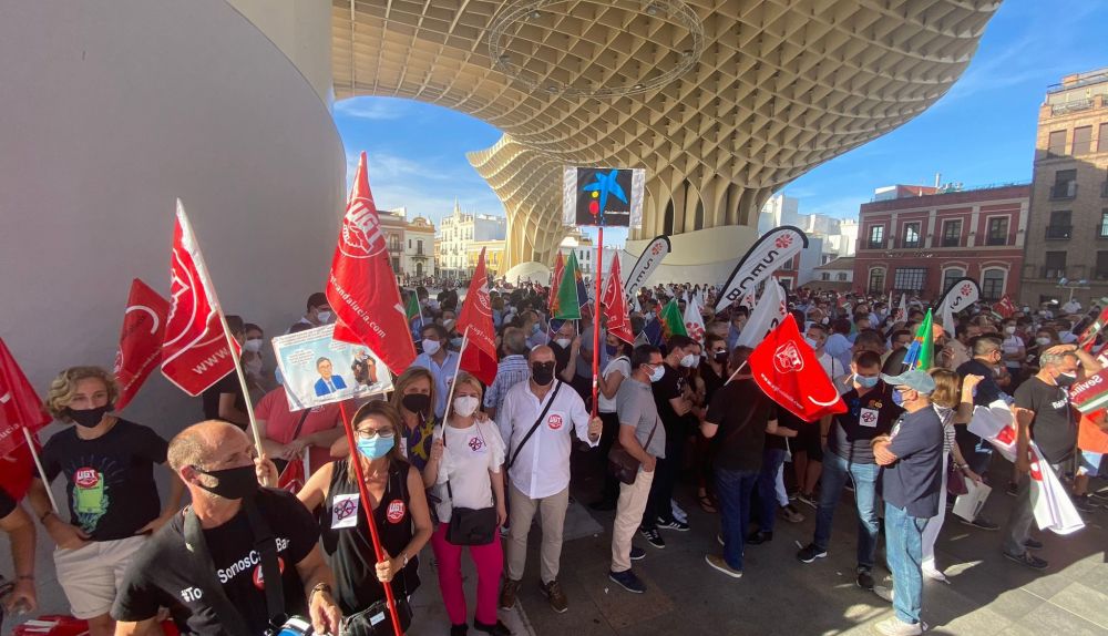 El sindicato UGT ha calificado de "éxito" las movilizaciones convocadas en Sevilla, Málaga y Granada en rechazo del Expediente de Regulación de Empleo (ERE) "salvaje" que ha presentado CaixaBank, que "puede causar el despido de mil empleados de los 6.000 con que cuenta la entidad en Andalucía".