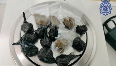 Durante la mañana de este jueves, en una intervención llevada a cabo en la Calle Cruces, los agentes observaron un ciclomotor estacionado de manera irregular. Al proceder a identificar al conductor, quien es conocido por antecedentes policiales, los agentes detectaron un comportamiento sospechoso. En el registro del ciclomotor, localizaron 14 bolsas de plástico que contenían una sustancia vegetal de color marrón, presuntamente hachís, con un peso aproximado de 26,66 gramos.