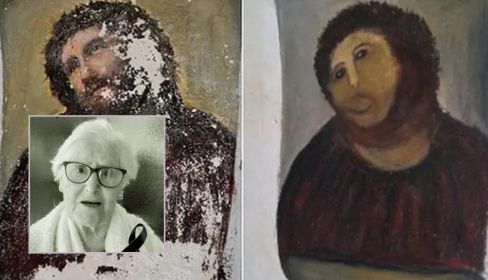 Como se recordará, fue en agosto de 2012 cuando salió a la luz la famosa restauración del Ecce Homo de Borja, una pintura mural ubicada en uno de los muros del Santuario de la Misericordia. La obra, realizada a principios del siglo XX por el pintor Elías García Martínez, presentaba un evidente mal estado de conservación. Con la mejor de las intenciones, Cecilia decidió repintarla por su cuenta para evitar que se perdiera definitivamente.