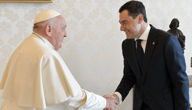En Andalucía, el presidente de la Junta, Juanma Moreno, ha indicado en sus redes: "El Papa Francisco descansa en paz abrazado por el cariño y la fe de millones de personas en el mundo. Su obra ha sido valiente, comprometida e inspiradora. Fue un hombre cercano. Me sorprendió su detallado conocimiento de Andalucía y su admiración por nuestra devoción popular".