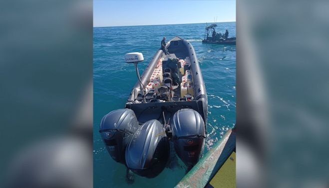 La Guardia Civil de Cádiz ha interceptado frente a la costa de Conil una Embarcación de Alta Velocidad, EAV cargada de petacas de gasolina y con 39 kilos de hachís a bordo. La narcolancha fue sorprendida cuando se encontraba abarloada junto a otras tres, dándose a la fuga al observar la presencia de las embarcaciones de la Guardia Civil.