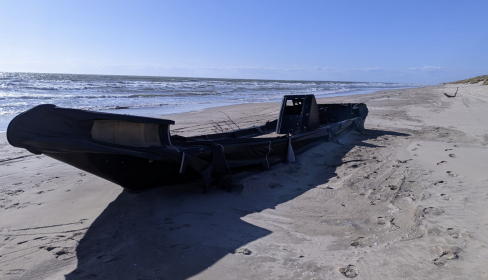 El historiador Marcos Pacheco ha compartido imágenes en sus redes de este hallazgo. "Hace tiempo que las naos y galeones dejaron de naufragar en las cosas de Sanlúcar, pues ahora son las planeadoras, gomas o narcolanchas", ha señalado.