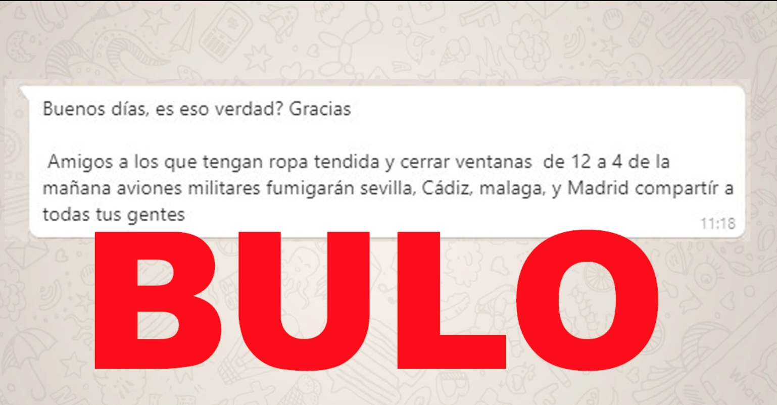"Es un bulo que es falso. La orden de Sanidad habilita a las fuerzas a usar aerosoles, no aeronaves", ha afirmado Villarroya a preguntas de los periodistas durante la rueda de prensa en el Palacio de la Moncloa, en la que ha explicado que el uso que se hará es similar al de "un insecticida en una habitación del hogar".