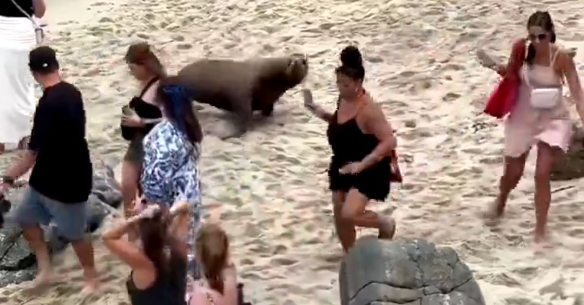 Varios veraneantes corriendo por la playa asustados por la presencia de unos leones marinos en la arena. Y un mensaje: “Esto acaba de pasar en Santa María del Mar, playa de Cádiz. Entre lo mal que me ha tratado la gente y que siempre te van a atacar trombas de leones marinos en grupo, no os recomiendo venir a Cádiz. Me vuelvo para Tomares ya”.
