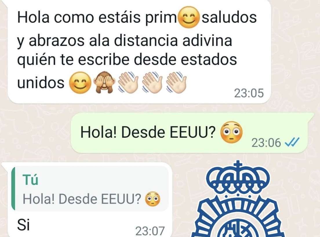 También se alerta sobre un nuevo tipo de engaño detectado a través de las aplicaciones móviles de mensajería instantánea tipo whassapp o telegram, los delincuentes simulan ser parientes lejanos residentes en el extranjero como excusa para iniciar una conversación en la que puedan conseguir datos personales de la víctima.