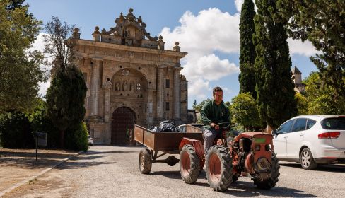 En la Cartuja se respira paz. Cuando la visita lavozdelsur.es, sopla el viento y no hay mucho ruido. Apenas una podadora que se oye a lo lejos, trabajando en algún arbusto. Cada poco tiempo, se deja ver algún trabajador. Una plantilla se encarga del mantenimiento. Y también hay jardineros, y alumnos de un curso de jardinería que practican en el mismo monasterio. Trabajo hay muchísimo.