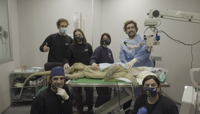 “Es un diagnóstico común tanto en humanos como en animales, pero la intervención se complica cuando hablamos de reptiles. Su ojo es bastante diferente al de los mamíferos. Esto hace que tanto el tratamiento como la operación sea algo especial. Era esencial tener referencias, saber cómo habían actuado en otros centros y prepararnos”, explica Rosa Martínez, veterinaria en Bioparc Fuengirola y directora de proyectos conservación de la Fundación Bioparc.