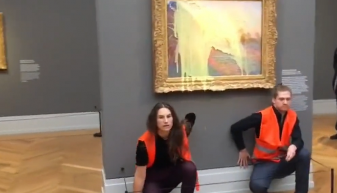 Dos activistas alemanes han atentado contra una obra de arte en el Museo Barberini de Postdam, en Alemania. El ataque se ha producido en la tarde de este domingo, cuando, de repente, dos personas han lanzado puré de patata sobre un cuadro de Monet.