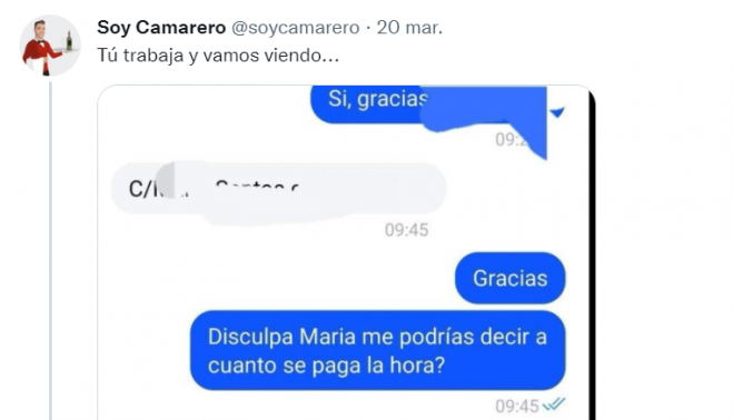 La cuenta @soycamarero, se dedica a denunciar esto abusos laborales en el terreno de la hostelería. En este caso, ha sacado a la luz un nuevo intento de abuso laboral a una camarera.