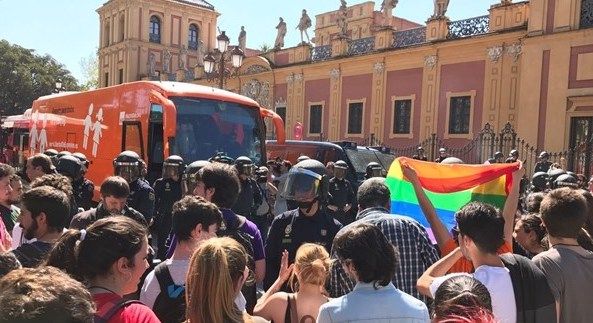 "Si naces hombre, eres hombre. Si eres mujer, seguirás siéndolo, que no te engañen", es el lema con el que recorrió las calles de Sevilla el autobús tránsfobo de la asociación ultracatólica Hazte Oír en marzo de 2017. Entonces, un grupo de jóvenes impidieron la circulación del vehículo, unos hechos por los que ahora se les atribuyen presuntos de delitos de odio ideológico a ocho de ellos.