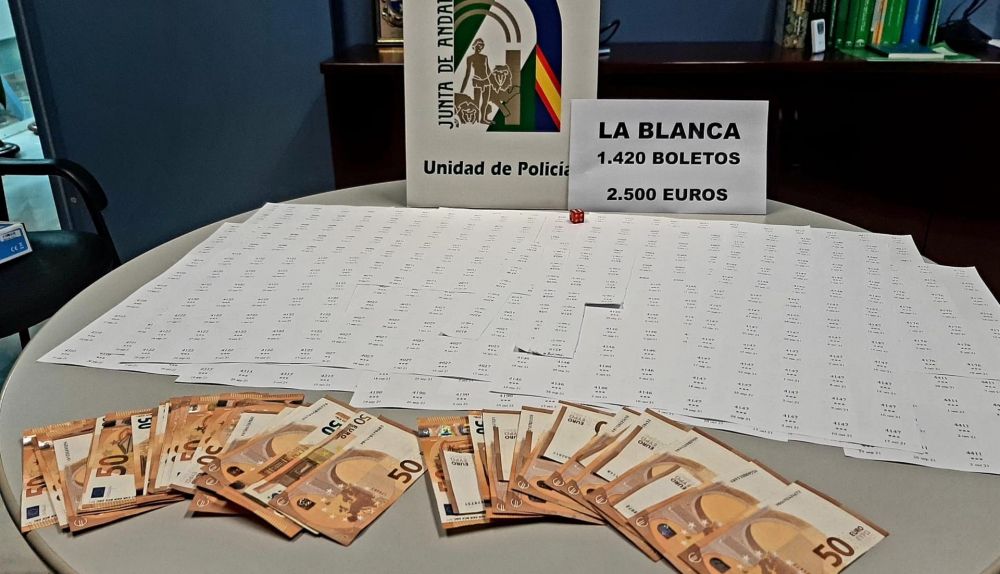 Agentes del Área de Juego de la Unidad de Policía Adscrita a la Comunidad Autónoma de Andalucía en Cádiz se han incautado de un total de 1.430 boletos de lotería ilegal denominada como La Blanca y 2.500 euros en efectivo, en una operación enmarcada al control del juego y la lotería clandestina en la cuidad.