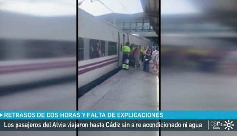 Una auténtica odisea han vivido los pasajeros del tren Alvia que el miércoles realizaba el trayecto Madrid-Cádiz. Sin aire acondicionado ni cafetería abierta durante un trayecto que acumuló casi dos horas y media de retraso, a la que se sumó media hora más de demora en la salida. En total, ocho horas para completar la distancia entre la capital y la Tacita de Plata.