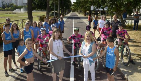 La alcaldesa, Mamen Sánchez, junto a la teniente de alcaldesa, Laura Álvarez, inauguraron el pasado viernes el nuevo circuito asfaltado para la práctica multideportiva de la elipse de la pradera de Chapín. A la cita acudieron varios jóvenes ataviados con sus equipos deportivos y biciclenas a fin de probar las nuevas intalaciones.