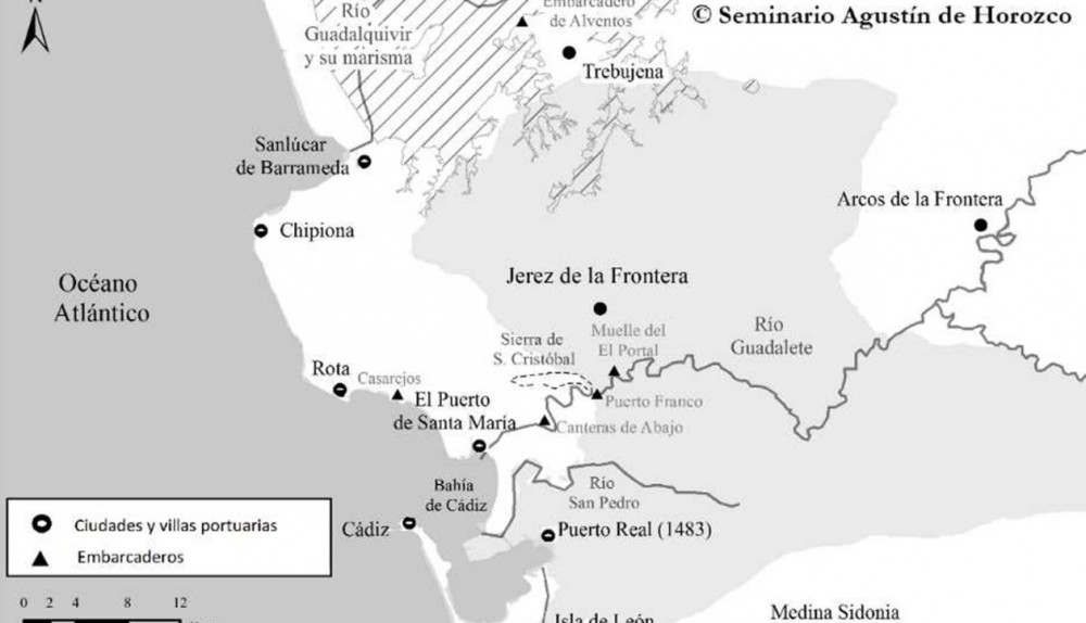 Durante los siglos XV y XVI, Jerez de la Frontera se consolidó como una ciudad clave en el ámbito político y comercial entre Sevilla y el Estrecho de Gibraltar, gracias al control del río Guadalete. Esta posición estratégica le permitió establecer redes comerciales tanto hacia el Atlántico y el mar del Norte como hacia el Mediterráneo.