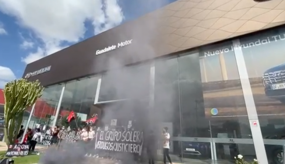 "15 años de trabajo responsable y cumpliendo los objetivos marcados por la empresa... Hyundai despide de forma discriminatoria a su empleado Antonio Reyes", se lee en un vídeo elaborado por el sindicato CGT, que protesta por el despido de un trabajador en el concesionario perteneciente al grupo Solera Motor en Jerez.