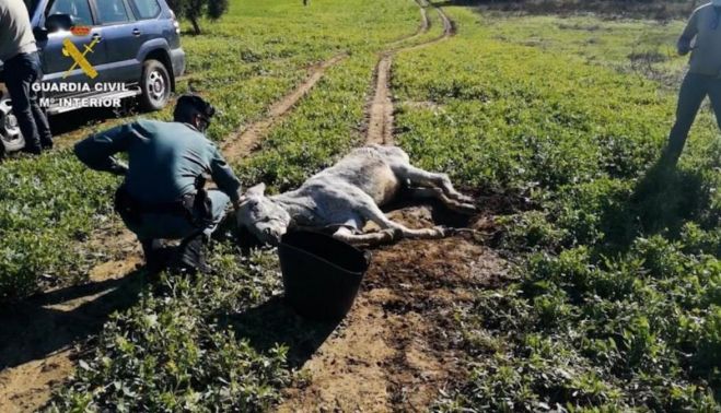 Según concreta la Benemérita en una nota de prensa, todo comenzó el 10 de noviembre, cuando agentes del Servicio de Protección de la Naturaleza (Seprona) recibieron aviso de un ciudadano anónimo, comunicando que en una parcela del extrarradio de Almonte había un burro tirado en el suelo desde hacía varios días, sin comida ni bebida.