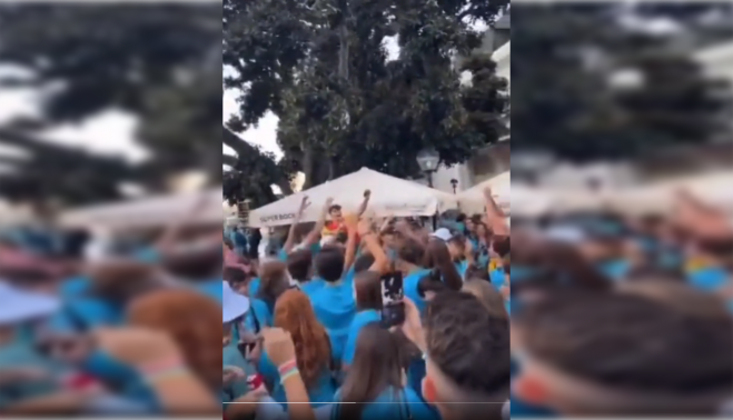 Un vídeo que se ha hecho viral por redes sociales muestra a los jóvenes españoles que han acudido a la Jornada Mundial de la Juventud (JMJ), que celebra la Iglesia Católica esta semana en Lisboa, con los brazos en alto y cantando el cara al sol, conocida canción falangista popularizada durante la dictadura de Franco.