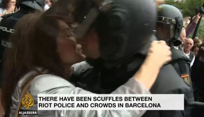 Seis años ha tardado un agente de la Policía Nacional, imputado por las cargas del referéndum ilegal celebrado en Cataluña el 1 de octubre de 2017, en denunciar lo que entiende como un beso "repentino y no consentido" de una manifestante.