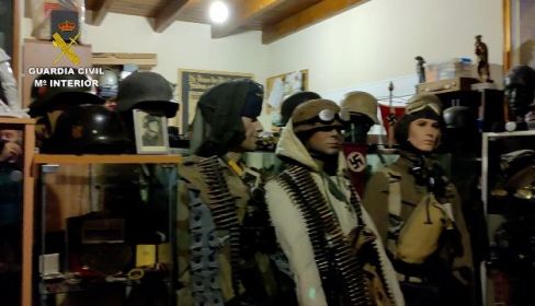 Vinculado a colectivos de extrema derecha y a movimientos nazis, el detenido tenía en su domicilio y en la nave registrada un “museo” de objetos, uniformes y banderas de temática nazi.