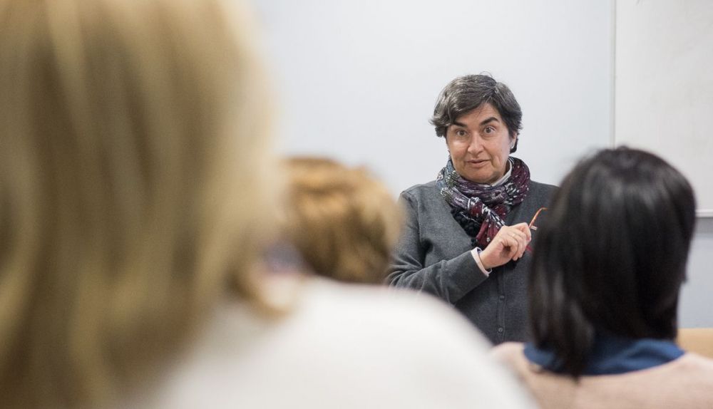 Charo Rizo, experta en Género y Políticas de Igualdad de CCOO Enseñanza, durante el encuentro con lavozdelsur.es. FOTO: MANU GARCÍA.