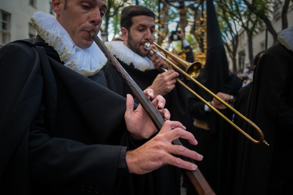 Capilla musical ante el paso de la Vera-Cruz. FOTO: MANU GARCÍA.
